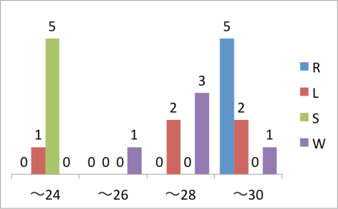 | Median: | 30 (R) 28 (L) 22 (S) 27 (W) |
