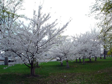 MIT と チャールズ川の間を走る道路 Memorial Drive の中央分離帯にある桜です。